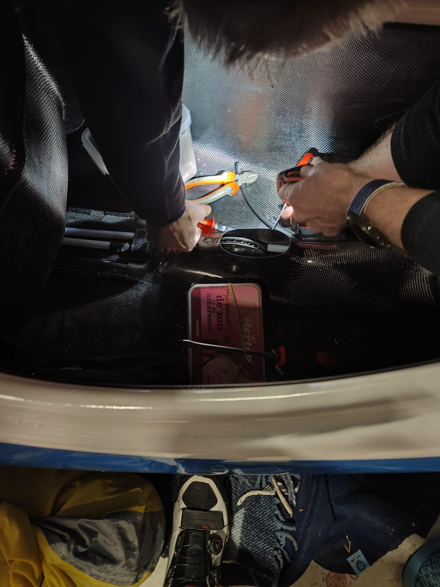 Sjoerd en Mark doen iets met een tiewrap en een tyleen buis.